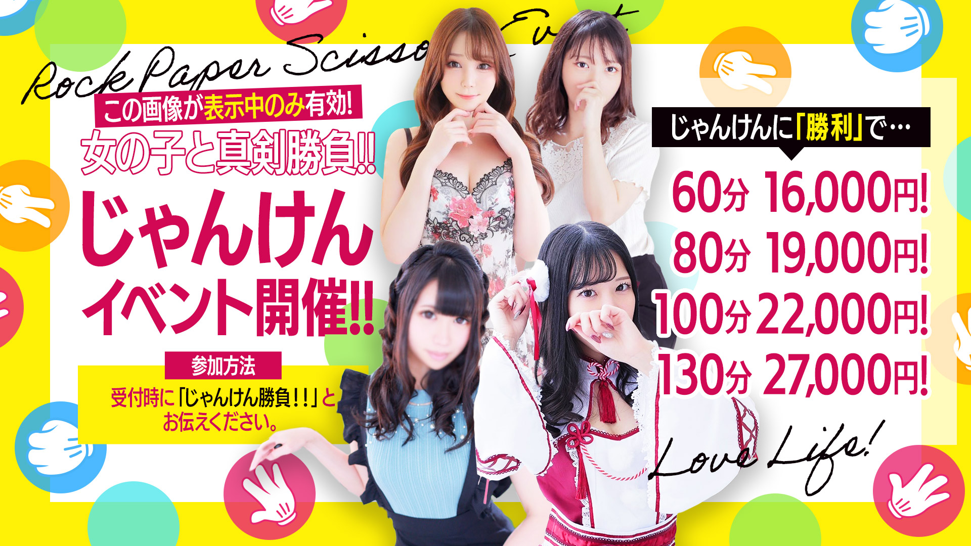 今回はみなさんに楽しんで遊んでいただくために、女の子との「じゃんけん勝負」をご用意いたしました!!